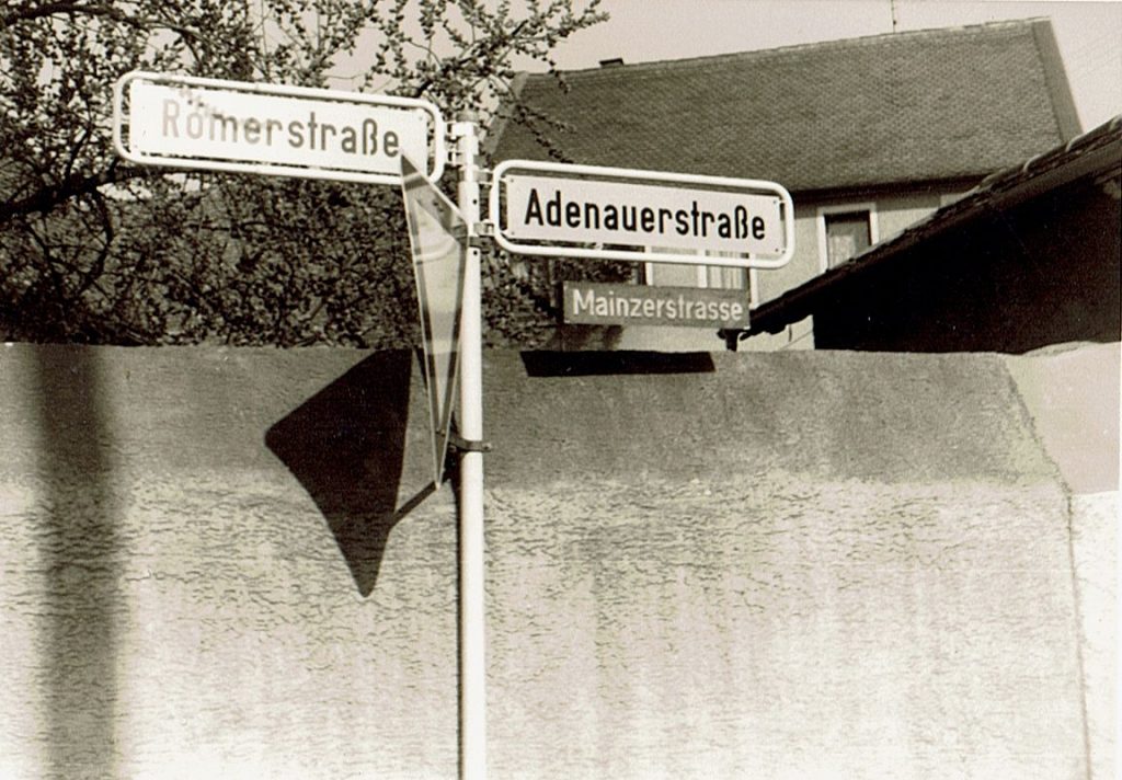 Am 01.04.1971 wurden betroffene Straßen umbenannt. Deswegen standen eine Zeitlang beide Namen an den Schildern, wie z.B. ALT Mainzerstrasse und NEU Adenauerstraße (richtig Konrad-Adenauer-Straße)